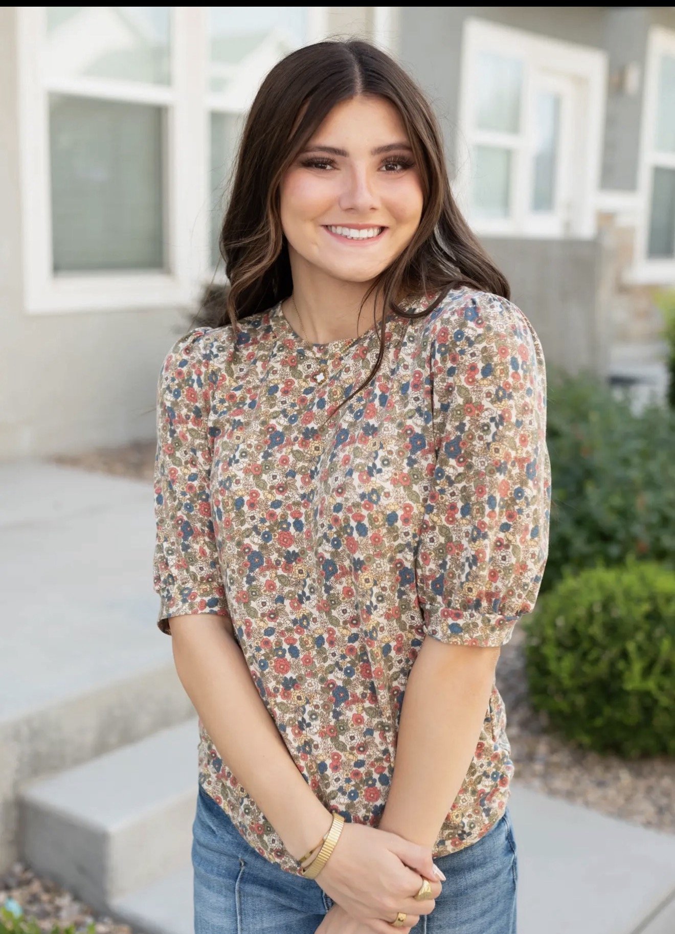 Soft, feminine, and made for everyday beauty ✨ This floral top features a delicate mix of earthy tones with a flattering relaxed fit and subtle puff sleeves. It’s lightweight, breathable, and pairs perfectly with your favorite denim for an easy, throw-on-and-go look.